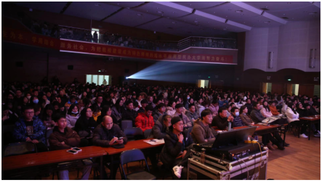 淮海战役中,60万将士不惧生死、浴血奋战,百万民众自告奋勇、推车支前,军民一心,才创造了彪炳史册的战争奇迹。江苏梆子剧院据此倾力打造大型倾力打造大型梆子现代戏《母亲》。戏中母亲的三儿子范三柱要去参军,青梅竹马的女孩送上了代表着情意悠悠的红腰带,两人在台上边扎腰带边唱着“沂蒙山水情意长”,台上的恋情与民族大义交织,红色题材和地方戏曲完美融合。而在敌营劝子这一幕中,范大娘得知自己仅剩下的二儿子竟然成了国民党的连长时,毅然走进军营去送包子煎饼,意图感化儿子。母亲在敌营里与国民党将领周旋舌战,台下的学生则聚精会神,欣赏这“智取敌营”的过程。这位感人至深的“母亲”范大娘虽是质朴的农民,但却通过送子参军、葬儿救生、生死年夜饭、敌营劝子等感人行动,将她对儿子牵心挂肠的母爱、对革命事业朴素的理解和真诚的支持演绎得淋漓尽致、感人至深。朴素的母子亲情,让红色故事更加可感。谢幕时,现场学子掌声如雷,感谢剧团主创人员带来的精彩演出。