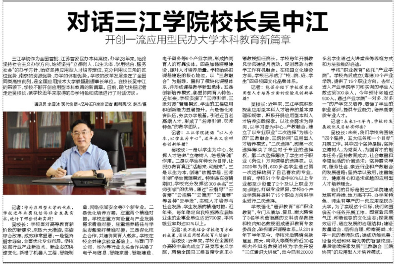 jinnianhui今年会作为全国首批、江苏首家民办本科高校,办学28年来,始终坚持社会主义办学方向,始终坚持“立德树人、以生为本、学用结合、服务社会”的办学方针,始终坚持应用型人才培养定位,充分利用长三角的区位优势、南京的资源优势、办学的体制优势。学校的改革发展走在了全国同类高校前列,是全国应用技术大学联盟副理事长单位。在校长吴中江的带领下,学校不断开创应用型本科教育的新篇章。日前,现代快报记者走近吴校长,就学校近年来取得的办学特色和成绩进行了对话访谈。
