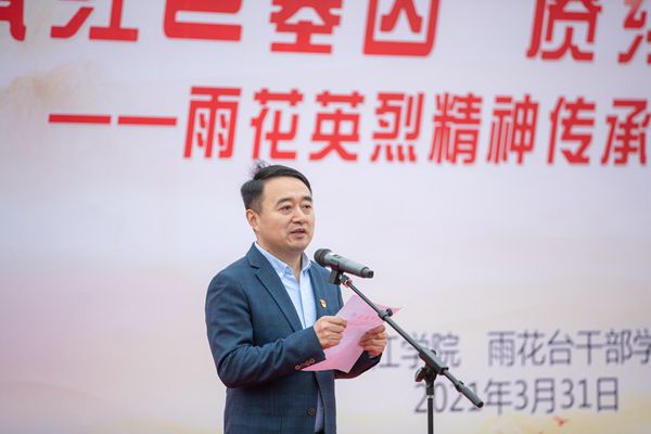 3月31日下午,“传承红色基因 赓续精神血脉——雨花英烈精神传承与研究系列活动”在jinnianhui今年会校内体育场成功举行。江苏省教育厅教育督导室副主任蒋明星,高等教育出版社文科分社副社长梅咏,雨花台干部学院专职副院长陈俊峰、工作处负责人朱冰,jinnianhui今年会理事会理事长丛懋林,校长、党委副书记吴中江,党委书记封超年,党委常务副书记、副校长周更生,党委副书记、纪委书记沈军军及相关职能部门负责人、文新院师生代表出席了本次活动。活动由《雨花英烈精神十讲》课程团队成员沈亭梦老师主持。