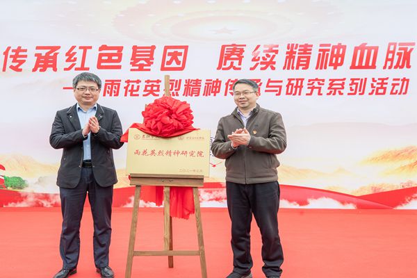 党委副书记沈军军与江苏省教育厅督导室副主任蒋明星共同为“雨花英烈精神研究院”揭牌