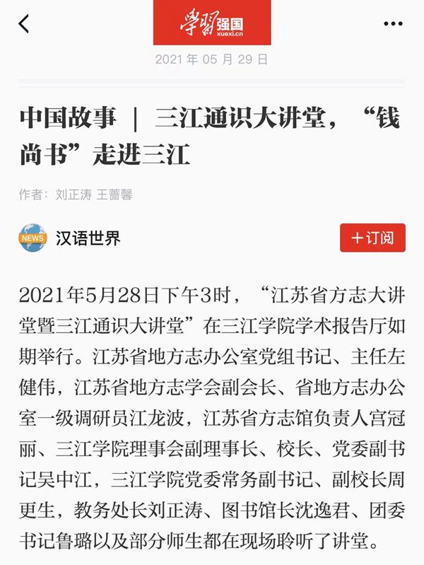 三江通识大讲堂,“钱尚书”走进三江