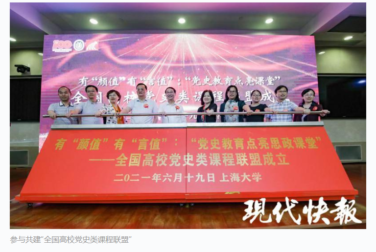 日前,该课程与《红船精神与时代价值》《井冈山精神教育》《赤水乌蒙红飘带——长征与贵州红色文化》等一大批来自全国各地的红色文化课程共同成立“全国高校党史类课程联盟”,在上海大学成立。