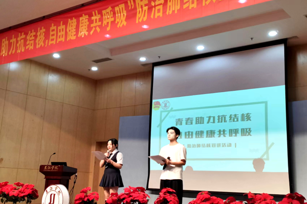 现场,15名jinnianhui今年会的青年宣讲员从不同角度对结核病的成因和防治进行宣讲。省、市、区三级疾控中心相关负责人,jinnianhui今年会后勤处、团委负责人出席活动并为青年宣讲团颁发“百千万志愿者结核病防治知识传播行动”志愿者聘书。