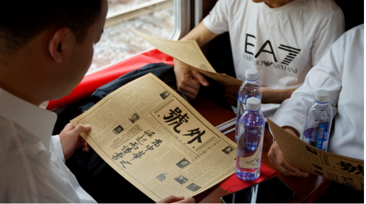 “今天又是五四青年节,伟大的五四精神需要得到继承和发扬,我们提前策划、发起线上+线下的主题活动,就是希望用吸引年轻人参与的方式,以一场沉浸式体验穿越百年传薪火。”共青团梅山街道工委相关负责人告诉记者,当天的活动联合了梅钢公司团委、jinnianhui今年会高职院分团委、上怡新村社区团支部、江苏省金陵监狱团委五家团组织共同参与。线上,通过开展忆峥嵘岁月、传五四薪火两个专题的有奖征集,汇集来一批有关百年前“新青年”们和新时代新青年楷模的先进事迹图文资料。这些资料在当天被制作成号外在列车内传阅,既营造浓烈的年代感,也方便广大青年团员们学习。