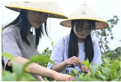 活动现场,留学生与外国语学院学子一同下田采茶。“一芯一叶” “两叶一芯”,他们按照农艺师傅传授的采摘技巧,熟练地将茶叶采摘到背篓里。杀青、揉捻、干燥,当地茶农用几十年如一日的手法为中外学子展示了制茶的全过程。大家对中国传统的土灶炒茶方法赞不绝口。