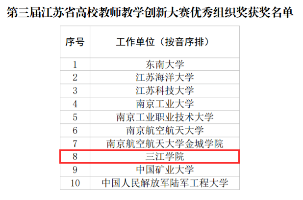 第三届江苏省高校教师教学创新大赛暨第三届全国高校教师教学创新大赛江苏省选拔赛决赛获奖名单出炉,今年会有2名教师进入决赛,其中,外国语学院陶潇婷《笔译I》课程获新文科副高组特等奖。同时,今年会荣获“优秀组织奖”。