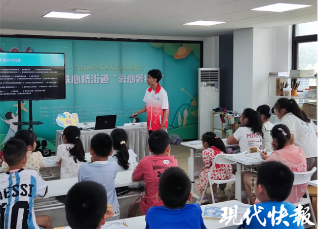 入选团中央2023年“七彩假期”志愿服务示范团队——“红心向党·科技筑梦”红色研学与科创实践项目的实践团队则依托街道爱心暑托班,紧扣红船精神、井冈山精神等教育主题,通过“听、说、读、探、画、行、议”等多元体验式活动,提供了宣讲、寻访、手工等课程。