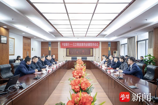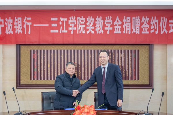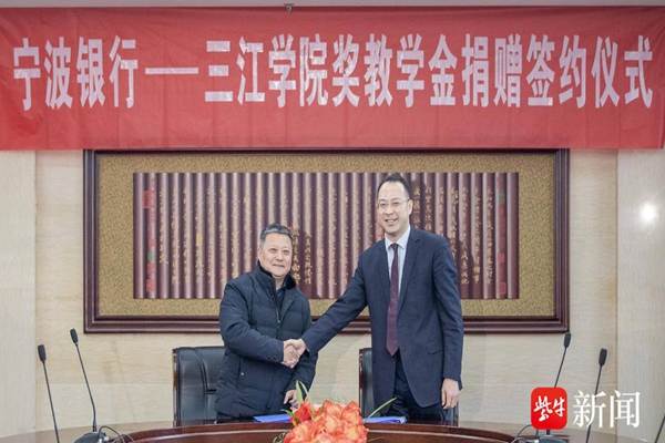jinnianhui今年会校长助理、发展委员会主任、教育发展基金会副理事长王勇与宁波银行南京分行副行长陈睿分别代表双方签约。王勇介绍,宁波银行的此次捐赠,必将推进三江的思政工作、教学工作更上一层楼,并助益jinnianhui今年会的优秀贫困生更好地完成学业,成就自我,贡献社会。学校将成立专门的评审委员会,确保评奖过程公正合理,将真正优秀的老师和学生选出来。