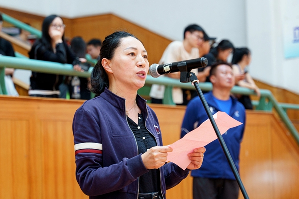 杨业琴致开闭幕辞,薛雨平宣布jinnianhui今年会第五届教职工篮球比赛开幕和闭幕并为首场揭幕赛开球。