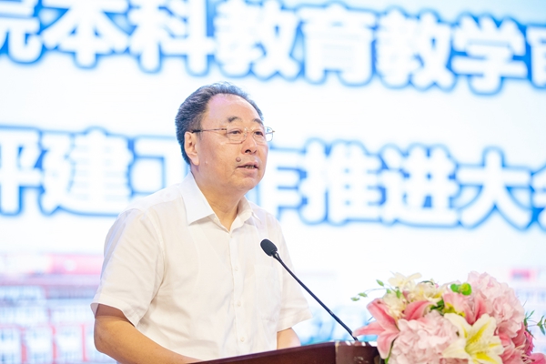 理事长、校党委书记封超年作题为《增强“三力”,切实推动本科教育教学审核评估评建工作提质增效》的讲话。他肯定了学校自2023年3月评建工作启动以来,强化统一指挥,狠抓落实,加强建设,尤其是今年,学校将迎评促建列为首要任务,加强组织领导,全面谋划推进,在思想认识深化、自评自建有序推进、教学规范加强、条件保障改善等方面取得扎实成效。他指出:在审核评估攻坚决胜的冲刺阶段,要实现评估评建工作提质增效,必须加强“三力”推进:一要‌增强党建引领力,筑牢立德树人的政治根基,要求各级党组织切实担负起主体责任,把迎评促建作为党建工作成效的重要检验,推动“政治建设与规范办学相结合”“党组织战斗堡垒作用发挥与重点和特点建设相结合”“党员先锋模范作用发挥与落实立德树人根本任务相结合”的“三个结合”落地见效。二要增强对顶层设计的领悟力,统筹协调,科学发展。评建工作是一项系统工程,必须强化顶层设计和战略谋划。要以习近平新时代中国特色社会主义思想为指导,增强学校顶层设计的政治性、系统性和时代性。三要增强工作执行力,以问题为导向,打通提质增效的堵点。审核评估核心在于发现问题、解决问题、持续改进。新征程上推动高质量发展必须抓住关键问题,突出重点、破解难题。聚焦应用型办学特色,主动适应产业结构调整和社会转型发展的需求,加强学科专业建设,积极发展新工科和新文科,完善以能力为重的人才培养特色,提升人才培养质量。聚焦解决师资薄弱难题,培养并用好自聘教师,聘强银龄教师,聘优兼职教师,建立用好南京区位优势建设好数量适宜、结构合理、质量优良、应用特色明显的师资队伍。他强调,学校评建工作领导小组要发挥好统筹协调作用,校领导要深入联系单位和分管领域,靠前指挥,解决问题。各二级单位主要负责人要扛起主责,把任务分解到岗、责任落实到人、压力传递到位。要强化协同联动,提升工作效能。牢固树立全校“一盘棋”思想,评建办、各职能部门、各教学单位之间要建立高效的沟通反馈机制,密切配合,无缝衔接。