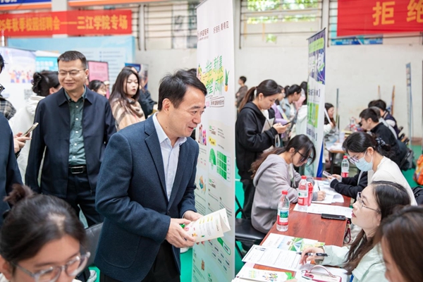 校领导深入各企业展位访企拓岗,与人社部门、用人单位代表进行深入交流,详细了解相关区域的引才政策和企业用人需求,听取用人单位对今年会毕业生的反馈及对学校人才培养的意见和建议,并就深化校地合作、校企协同育人、推动人才培养与产业升级同频共振等方面达成初步共识。