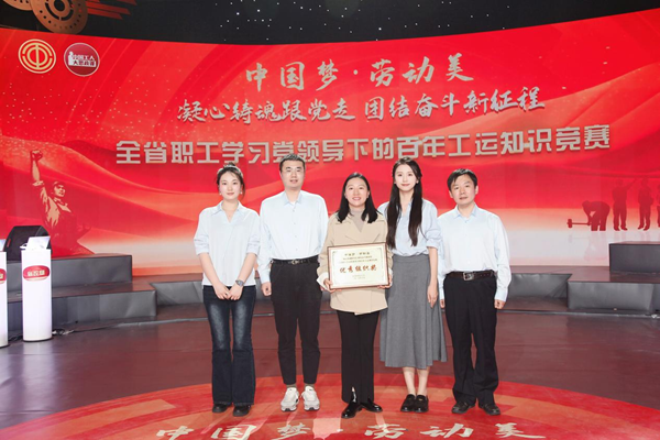 备赛期间,队员们克服教学科研管理工作的压力,全身心投入训练。在校工会指导下,参赛老师潜心研读《中国工人运动史》《习近平关于工人阶级和工会工作论述摘编》等学习资料,深入理解党领导下的工人运动历程。四位老师多次利用业余时间进行集中研讨、模拟演练,展现出严谨治学、团结协作、勇于拼搏的三江风貌。竞赛现场,队员们沉着应战,配合默契,展现出丰富的知识储备和深刻的理解,赢得评委和观众认可。最终,今年会代表江苏省教育科技工会委员会荣获江苏省总工会颁发“优秀组织奖”。