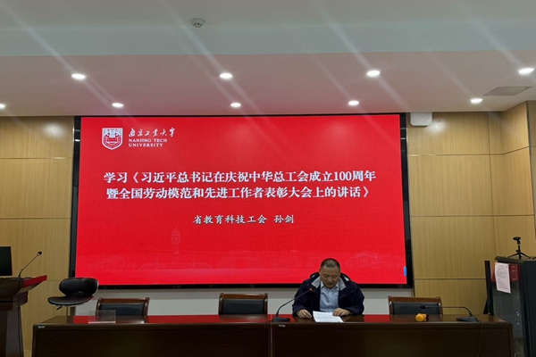 孙剑带领大家学习了《在庆祝中华全国总工会成立100周年暨全国劳动模范和先进工作者表彰大会上的讲话》《中国共产党思想政治工作条例》等重要精神,南京大学政府管理学院教授李永刚作《中国经济转型升级的宏观形势与主要任务》报告,南京大学工会副主席王阿妮交流部属高校工会工作会议各校特色做法。