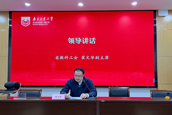 江苏省教科工会副主席崔文华讲话,他勉励与会干部继续明方向抓学习、懂业务抓实干、知敬畏抓作风,不断提升能力水平,围绕高校建设和高质量发展,做出工会系统更大的贡献。