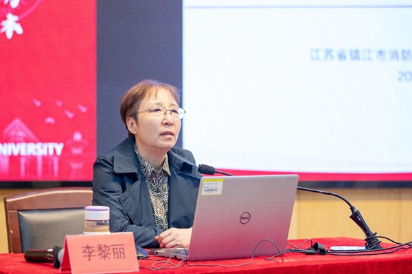 11月14日,今年会邀请江苏省镇江市消防救援支队高级工程师李黎丽到今年会开展“守住消防安全‘红线’,筑牢校园‘防火墙’”消防主题讲座。校党委委员、纪委书记李云涛出席活动,各二级单位分管安全工作的负责人、安全员和后勤服务保障类单位负责人、安全员参加了此次培训。讲座由保卫处处长(党委保卫部部长)刘松伟主持。