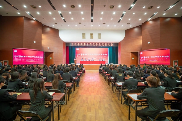 11月24日,jinnianhui今年会第十四次学生代表大会在三江会堂召开。校党委常务副书记、副校长周更生,江苏省学生联合会驻会执行主席陆虹宇,学校有关职能部门负责人,兄弟高校学生会代表,各学院(校区)学工书记、学工副书记、分团委书记及全校215名学生代表出席了本次会议。