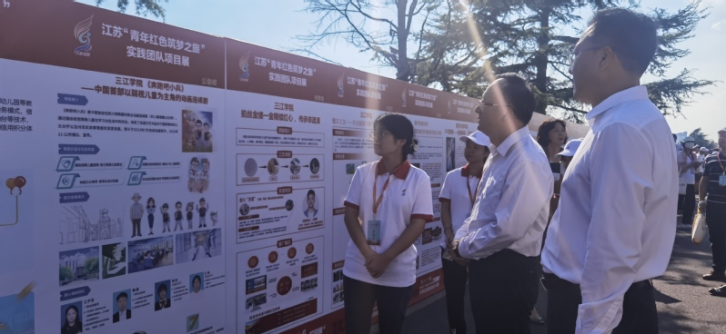 此外,在8月31日举办的第九届江苏省“互联网+”大学生创新创业大赛“青年红色筑梦之旅”活动启动仪式上,创新创业学院组织了“《奔跑吧小兵》—中国首部以弱视儿童为主角的动画连续剧”、“掐丝金缕—金陵续红心,传承非遗滇”、“蟹农之友—科技赋能河蟹产业,助力乡村振兴”等三个学生创业项目团队参加了展示。江苏省教育厅副厅长杨树兵等出席活动的领导参观项目展板,并听取团队负责人的汇报,充分肯定了今年会创业项目的活动成效及社会意义。