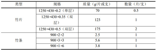 (1)竹材采用本色复压竹材,提供的竹材规格及数量如表 1 所示,竹材力学指标参考表 2。