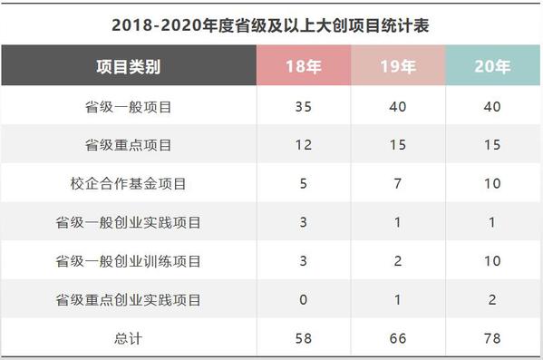 2018-2020年度省级及以上大创项目统计表