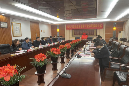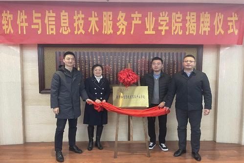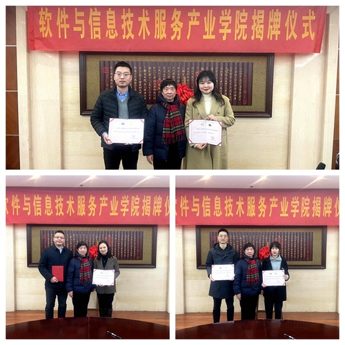 刘亚军介绍了软件和信息技术服务产业学院的组织架构情况,分别为合作企业授牌并颁发聘书,所有人员合影留念。