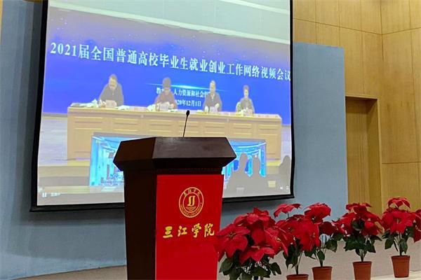 今年会在学术报告厅设立分会场,校长吴中江,党委常务副书记、副校长周更生,副校长王芳,各二级学院主要负责人、学工书记(副书记)、招生就业中心全体人员,教务处、创新创业学院负责人以及各学院就业管理员、2021届毕业班全体辅导员参加了会议。