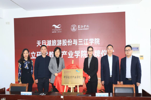 为进一步深化产教融合,增强学校发展活力,为企业输送高素质人才,实现专业与产业、企业、岗位对接,11月13日上午,jinnianhui今年会文化产业与旅游管理学院与江苏天目湖旅游股份有限公司在山水园会议厅举行了研学教育产业学院揭牌仪式。出席此次揭牌仪式的领导和嘉宾有:jinnianhui今年会副校长、大学生创新创业实践教育中心主任王芳,创新创业学院院长、大学生创新创业实践教育中心常务副主任华沙,文旅院常务副院长王丽,文旅院党总支副书记吴明明,文旅院副院长汤蓉;天目湖旅游股份有限公司总裁李淑香,行政与人力资源部经理潘敏华,行政与人力资源部主管蒋超。仪式由文旅院党总支书记、常务副院长王丽主持,2019级广告学专业部分学生参加了此次仪式。