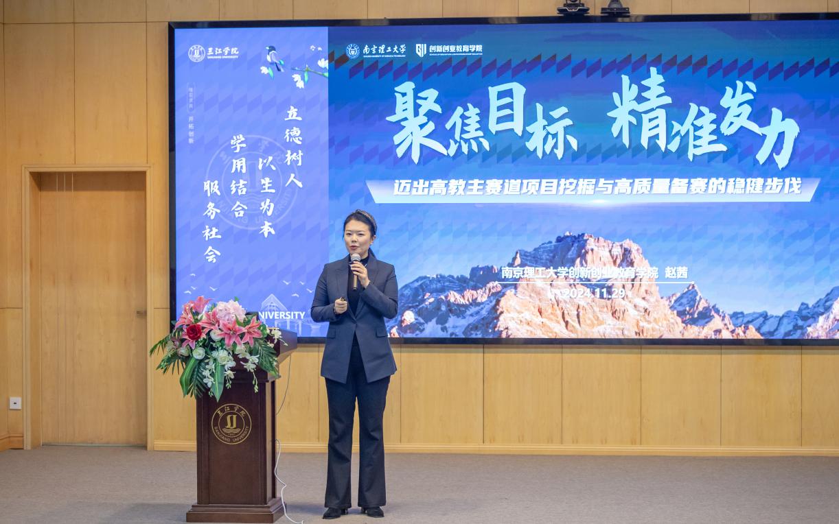 赵茜以“精选优育 合力推动——大赛推动创新创业教育高质量发展特色之路”为题,从“优赛制、研赛法、选赛道、转赛果、强赛力、铸赛魂”等多个角度详细讲解南京理工大学在中国国际大学生创新大赛方面的做法和经验,并通过优秀参赛作品展示和典型案例分析全方位向老师们展示创新大赛的比赛要领和准备方法,赢得了在场老师的一致好评。