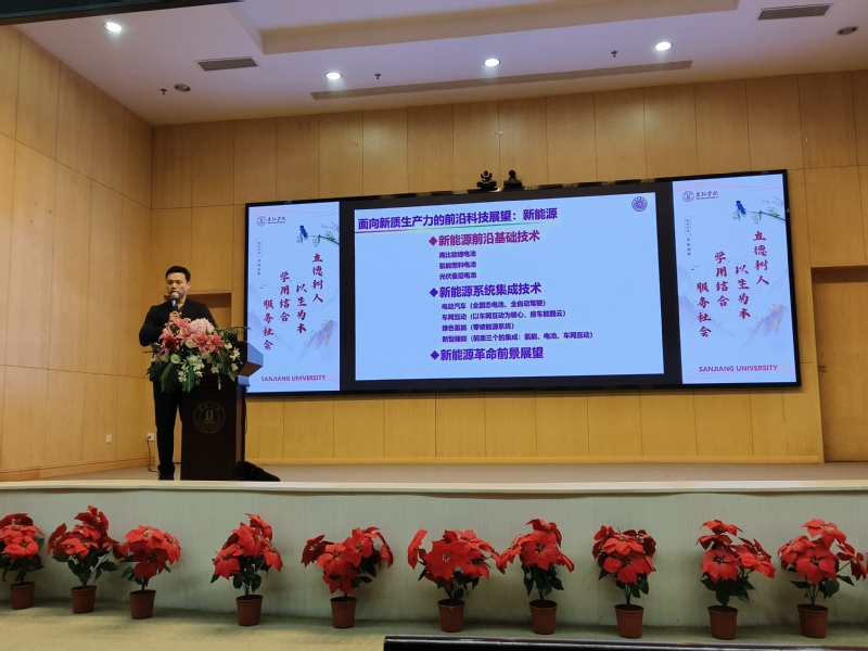 接下来,王毅教授结合多个领域的典型案例进行了深入剖析。在新能源领域,他重点介绍了在国家双碳战略背景下涌现的创新创业实践。他指出,在国家双碳战略推动下,部分创业者聚焦风电、太阳能等新能源产业,深入研究锂电池、氢燃料电池等关键技术,特别是在电车关键零部件、电池安全监测系统等细分领域,通过精准市场定位和团队建设,成功实现了技术创新与商业突破。这些案例生动诠释了技术创新与市场需求的有效结合,为在场学子提供了宝贵的创业启示。随后,王教授还陆续分享了医学等领域的典型案例。