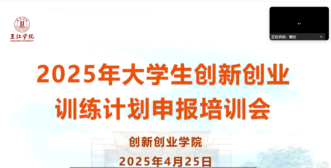 为了进一步推进2025年大学生创新创业训练计划(以下简称“大创项目”)申报工作,帮助师生更好地理解申报政策、掌握申报流程,创新创业学院于2025年4月25日在线上(腾讯会议室)召开2025年大创项目申报专题培训会。会议由创新创业服务科科长刘玉梅老师主持,各学院分管领导、双创联络员、拟申报2025年大创计划的指导教师及学生团队参会。