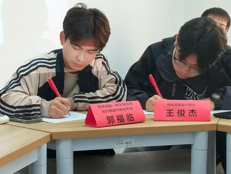 签约仪式的尾声在一片庄重而热烈的气氛中落下帷幕。创新创业学院刘老师与新入驻项目负责人共同签署了入驻协议,标志着双方合作的崭新篇章正式开启。