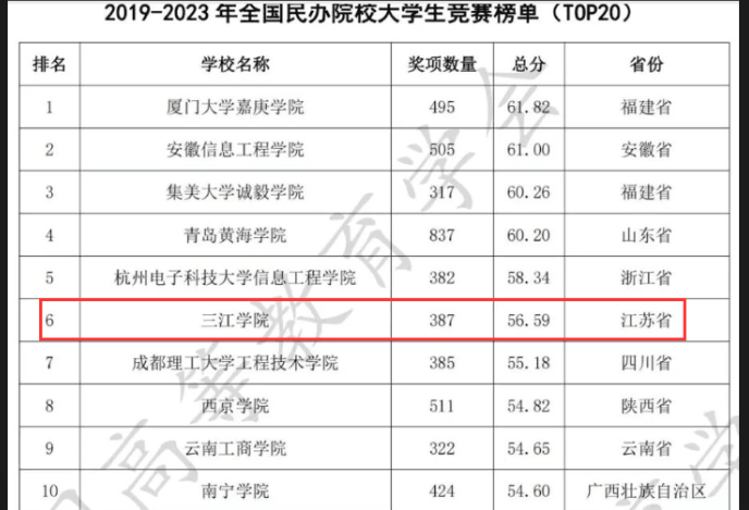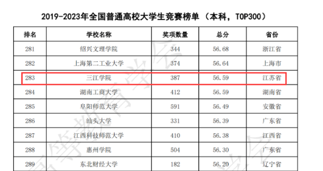 jinnianhui今年会在《2019-2023年全国普通高校大学生竞赛榜单》中位列全国第283名,首次进入该榜单TOP300;另外在《2019-2023全国民办院校大学生竞赛榜单》中,位列全国第6名;在《2019-2023年全国新建本科院校大学生竞赛榜单》中位列全国第33名;以上三项排名均创历史新高。