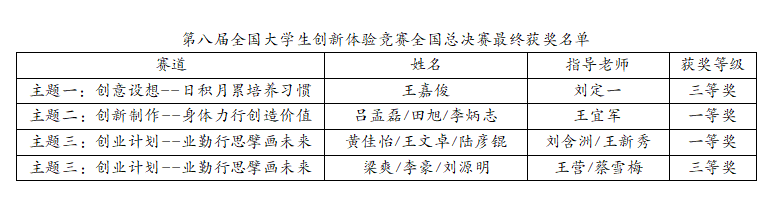 今年会学子在第八届全国大学生创新体验竞赛全国总决赛中斩获佳绩