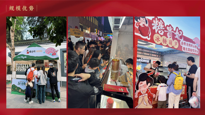 2020年,周旭带领团队孵化出餐饮品牌“唐贵妃冰糖葫芦”,如今全国门店已超过300家,稳居行业前列。该品牌成功的背后,是一套务实的“破圈逻辑”: