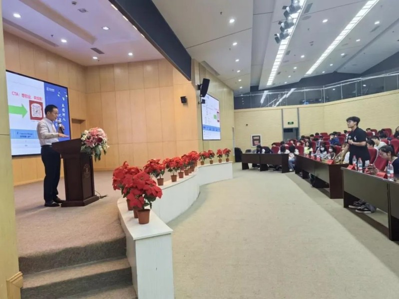 他以深圳安克创新为例,这家企业凭借一款充电器,市值向着千亿冲刺,生动地向同学们证明了新兴领域为创业者提供的广阔发展空间。