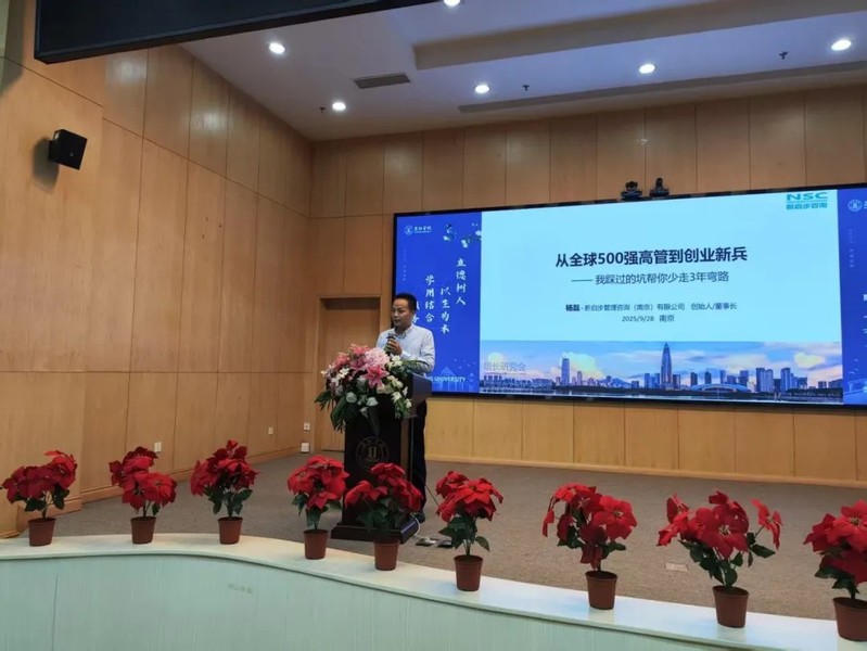 9月28日晚,今年会双创系列讲座第84讲《从500强“高管”到创业“新兵”——我踩过的坑帮你少走3年弯路》在学术报告厅举行,新启步管理咨询(南京)有限公司创始人/董事长杨磊应邀担任主讲嘉宾。杨磊先生凭借丰富履历带来精彩分享。他拥有22年外资 HR 经验、5年民企高管经历,且已创业3年,此次以亲身经历为同学们拆解创业路上的 “生存法则”,内容实用、干货满满,让在场听众直呼过瘾。